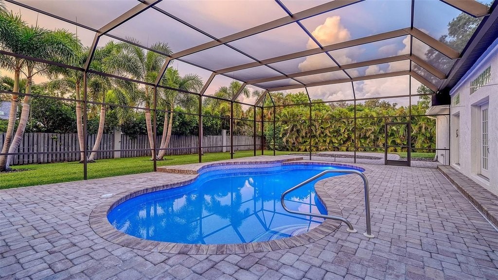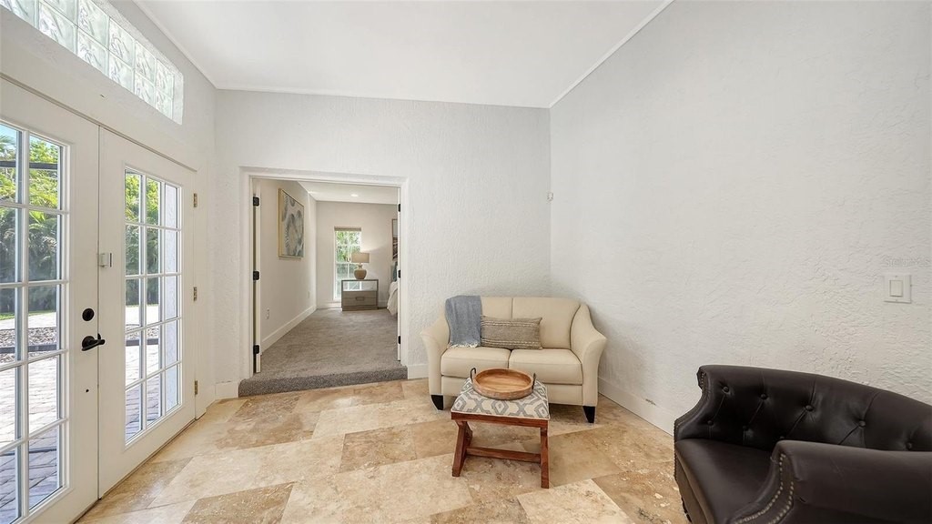 Tucked within the prestigious, gated enclave of Beneva Oaks, where centuries-old live oaks line meandering streets, this masterfully renovated home on a ½ acre lot offers incredible 2025 updates and a wonderful 4-bedroom, 3.5-bath, 1-story floor plan providing both grandeur and comfort across the expansive space. A circular drive framed by lush landscaping leads to the elegant entry of this modern residence, where refined upgrades blend seamlessly with timeless architectural features. Inside, travertine floors flow through the main living areas, while new designer carpet enhances the comfort of the bedrooms. The heart of the home is the extraordinary new eat-in kitchen featuring gleaming quartz countertops, crisp white wood cabinetry, stainless appliances including an induction cooktop, wide plank porcelain tile floor, and a custom tile backsplash. Accents like gold hardware, designer lighting, crown molding, and wide baseboards add the feel of luxury, while four sets of French doors connect the interior seamlessly with the lush exterior surroundings. An elegant dual-sided wood-burning fireplace with brick and tile surround and quartz and travertine hearths anchors the living and sitting areas, creating inviting spaces for conversation or quiet moments. With multiple entertaining areas designed for both intimate gatherings, grand-scale events or even a game of pool, the home's layout flows effortlessly from indoors to the screened lanai with paver deck, where a heated pool enhanced by Iconic Pools with sparkling new glass tile surface invites year-round enjoyment. The spacious primary suite, is a sanctuary unto itself, offering three walk-in closets with custom closet systems, and an extraordinary spa-inspired bath with bespoke tile work, frameless glass shower, gold fixtures, and a quartz-topped dual-sink vanity that exudes luxury. Two additional guest bedrooms enjoy new carpet, large closets, and generous natural light, while the newly redesigned guest bath impresses with design-forward flooring, quartz dual-sink vanity, and clean, modern finishes. The 4th bedroom can also be used as in-law suite, enjoying its own private French door entry and full bath with walk-in shower. The office with a custom built-in loft, closet, and a front facing window is ideal as a workspace, study, play, or creative escape. A chic updated powder bath adds further convenience. The thoughtfully designed laundry room features quartz countertops, utility sink, abundant cabinetry, and front-load GE Whirlpool washer/dryer. The oversized 2-car garage and beautifully landscaped grounds complete this exceptional property in one of Sarasota’s most serene and sought-after neighborhoods. Located in a top rated school district, X flood zone and within close proximity to Sarasota's dining, shopping, culture, and the pristine Gulf of Mexico beaches, this exceptional property offers an unparalleled combination of design and craftsmanship in one of Sarasota’s best-kept secret neighborhoods, presenting a rare opportunity to experience refined Florida living at its finest!